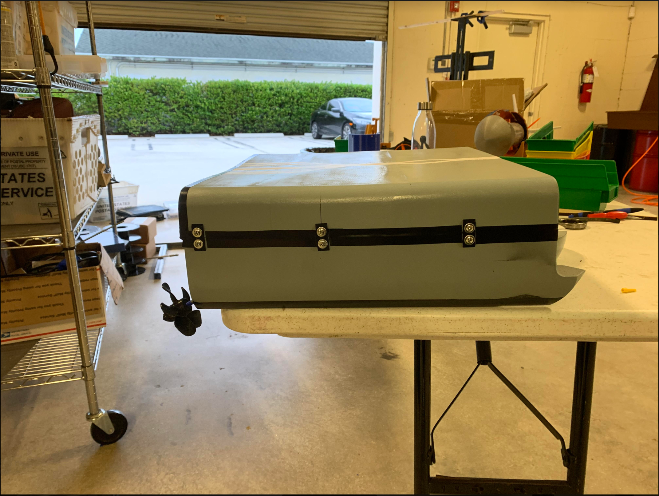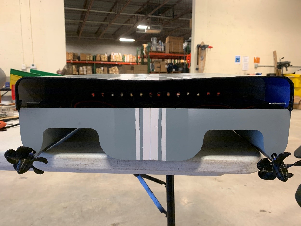 The obstacle avoidance autonomous vessel is complete. It is sea worthy (well very calm seas) and works as intended. There is an opening in the back of the vessel to allow easy battery change for the motors as well as a way to view the inner electronics. The top portion of the vessel is secured using 3D printed supports that is screwed to both the bottom and top portions of the hull. Initially, the plan was to glue the sections together, but the walls were so thin and there was also mild warping of the hull so gluing them together proved to be an almost impossible task. Another problem I ran into was fitting the ultrasonic sensors into the mounts on the top portion of the vessel. I previously tested them to make sure they fit, but I think when I spray painted/ sanded the hull, it must have added a few layers to the inside mounts. I used a file to open the holes a slight amount and the sensors were then able to fit firmly snug. The LEDs were fitted into the holes of the windows in the ASV as well. As of right now, the ASV is not entirely user friendly. A future modification to be made would be to change the design of the top hull mounting to allow easier access to the electronics in case of troubleshooting. Overall, this project taught me a lot about the importance of proper planning when it comes to the design phase of this project. I wanted to jump right in and start building parts, that I didn’t do the proper analysis that could have saved me a lot more time in the future. I also thought of more ideas as I was building the ASV, but was not able to implement them due to the design not being able to accommodate those ideas. For future projects, the design phase will be done a lot more closely. Even with the setbacks, I learned a lot working on the project and developed new skills as well as strengthen old ones. It has been storming a lot recently here in south Florida so as soon as the weather clears up, a video will be posted of the ASV in action.