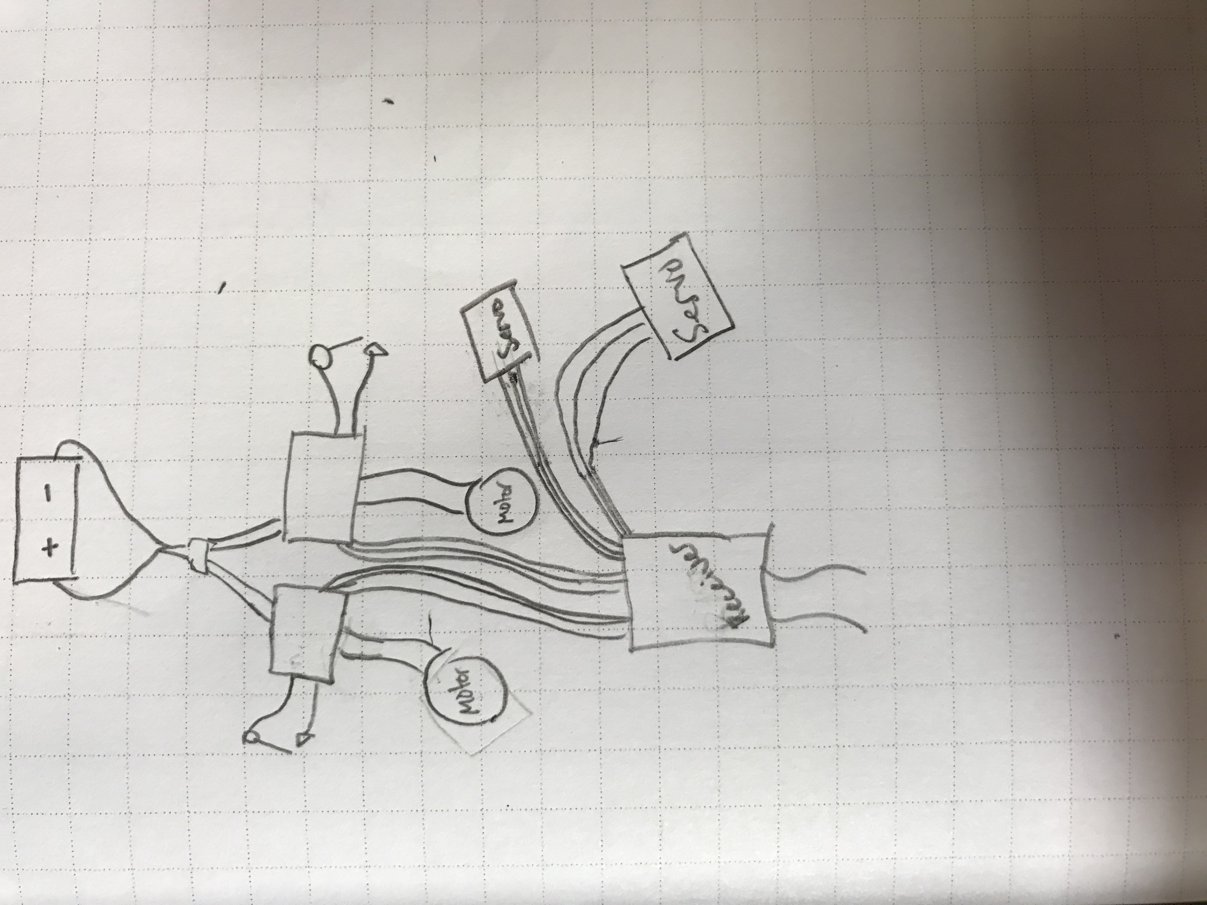 With this decision, I made a wiring diagram (as seen below). As you can see, the current from the battery will flow through each of the motor controllers in parallel fashion.
