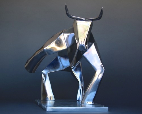 Amos appreciates the coldness and lifelessness of the steel as it allows him to mold it and bring it to life. A key component for Amos is kinetic energy, is this kinetic energy that is insidiously found in all his pieces, this makes his work so unique and fascinating. Take his bull for example (pictures below) while not moving, it clearly posses preserved energy to propel it at any given moment for movement.  By looking at it we feel we are only  seconds away from seeing this majestic bull take speed and charge. Equally impressive is the fact that, this bull used to be one single giant piece of metal but thanks to Amos hands it has now come to life to delight our eyes as we stand in front of it in awe.