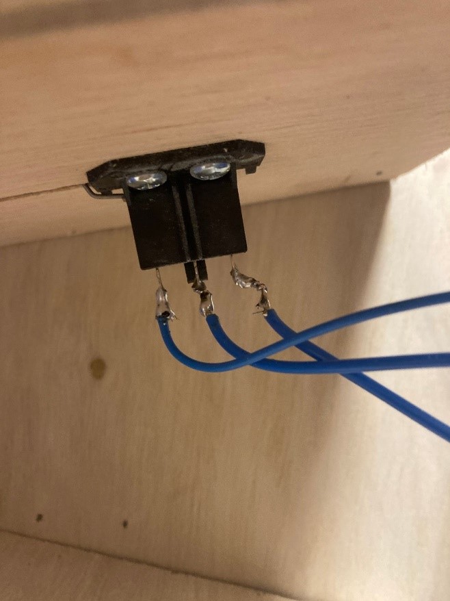 Figure 6: Mounted switches on bottom of skeeball, with wires leading to Arduino and LED