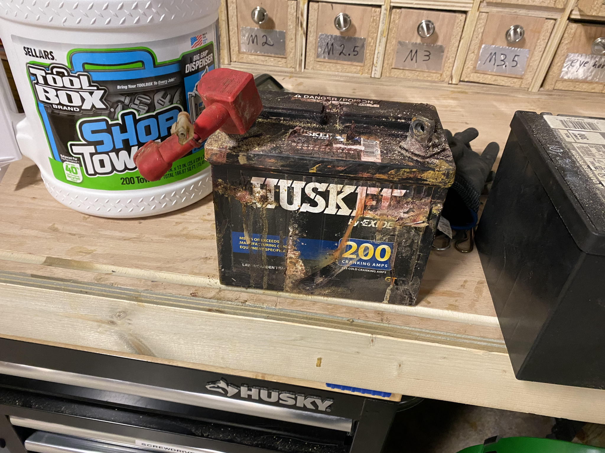 Unfortunately before we were able to test our governor delete, our first problem reared its head, that being a bad battery. While the mower did run and start long enough for us to get baseline numbers it gave her last while we tried to start it up to see if we were on the right track. Upon closer inspection we were shocked it ever started, below is a picture of what the battery looked like when we pulled it from the mower. The sulfuric acid in the battery had leaked and corroded the bolts holding the leads to the terminals so much that when we tried to get a wrench on them they just started to crumble. In the end I had to use the bolt off the positive terminal because there was no other way we were going to get what remained of it out. Fortunately, a wire brush and one Home Depot run later and we were able to get the mower to roar to life once more with a fresh battery. This is a textbook case of why preventative maintenance is important as even though we probably could have jumped the mower off and gotten it to start, the corrosion was already bad enough that it was starting to rust the support bracket, and left unchecked it would have caused extensive damage.